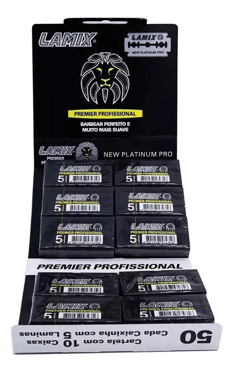 Lâmina de Barbear Profissional Lamix Premier - 1 Cartela com 50 unidades